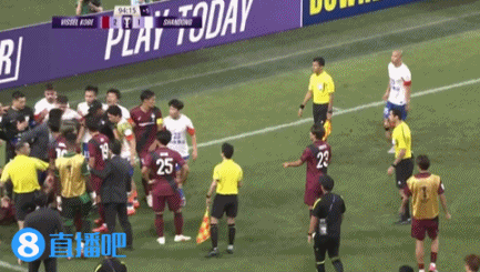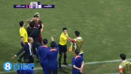 主裁判直接吹响比赛结束的哨声再度引发泰山球员不满。↓
