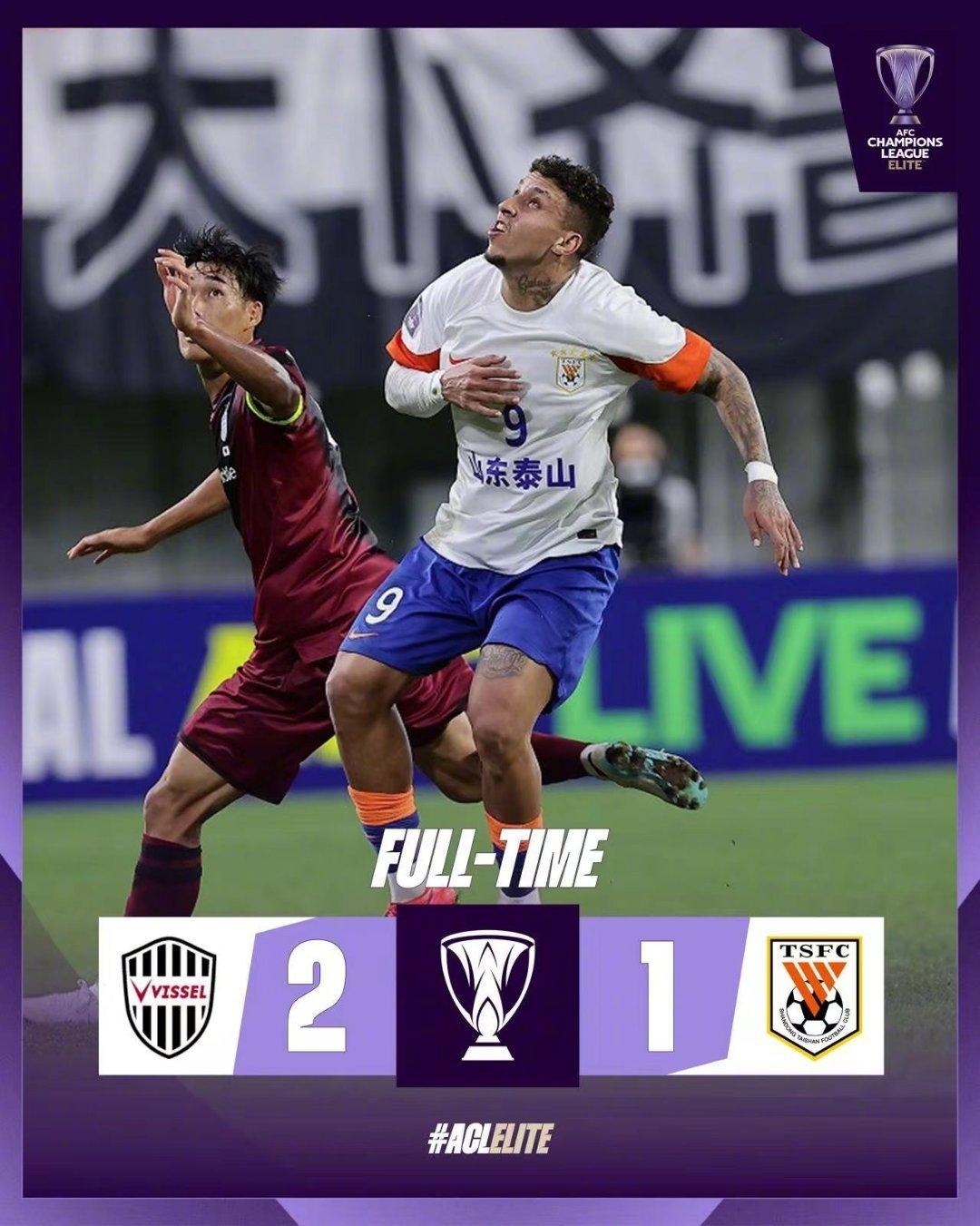全场比赛结束,山东泰山1-2神户胜利船。