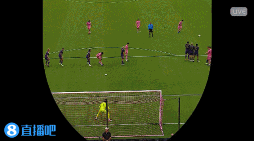 第90分钟,梅西任意球打门,球没有压住