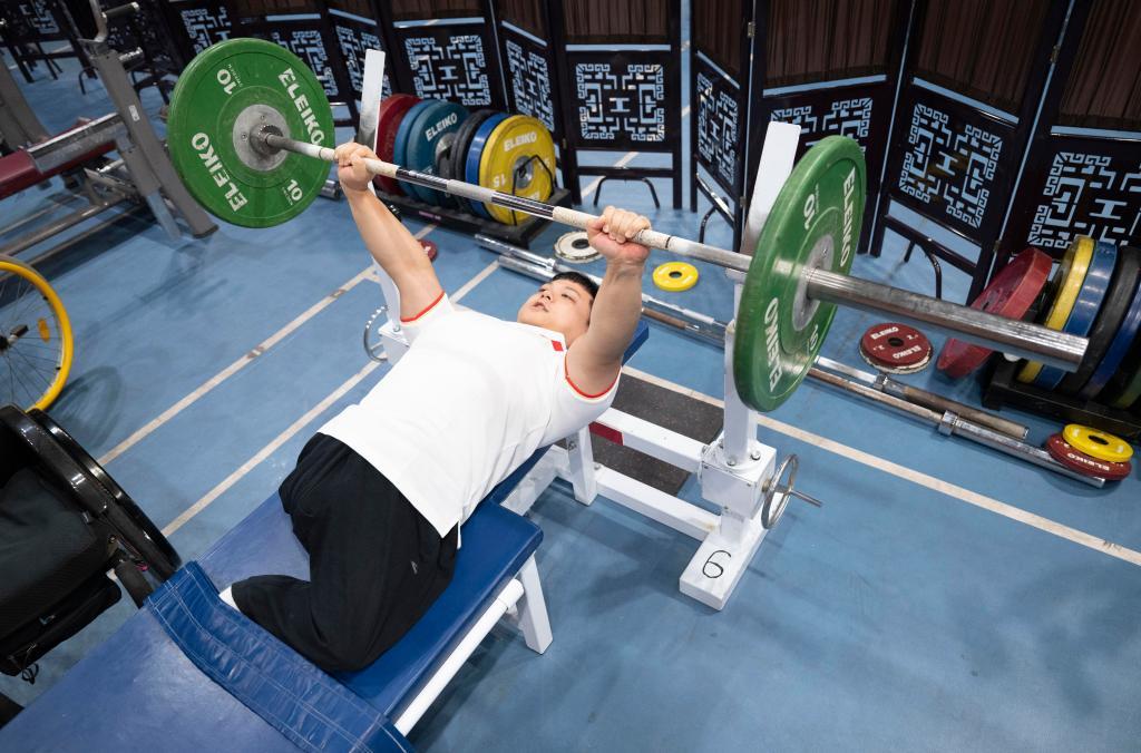 5月20日,东京残奥会男子举重冠军齐勇凯在训练中。新华社记者才扬 摄