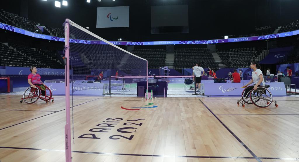 8月24日,巴黎残奥会中国体育代表团羽毛球运动员在训练中。新华社记者 才扬 摄