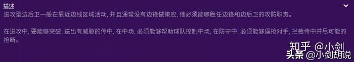 边后卫设定的全能型边后卫。这种边后卫对球员体能相关的数值要求比较严格,因为他要求边后卫能回防,还能压倒对手禁区边路进行传中。