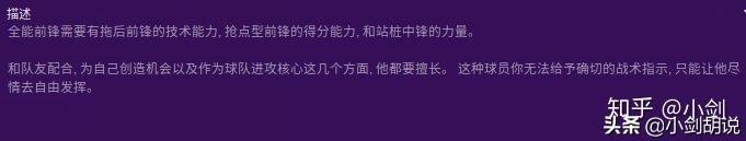 简单来说就是:突前前锋带头进攻,抢点前锋就知道射门,全能前锋啥都要干,站桩中锋我大吉鲁。