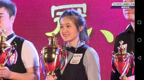 在9月15日结束的2018石家庄“乔氏杯”中式八球国际公开赛中,河北衡水17岁的台球少女王也成为了中式八球运动首个在公开赛中夺冠的女球手。