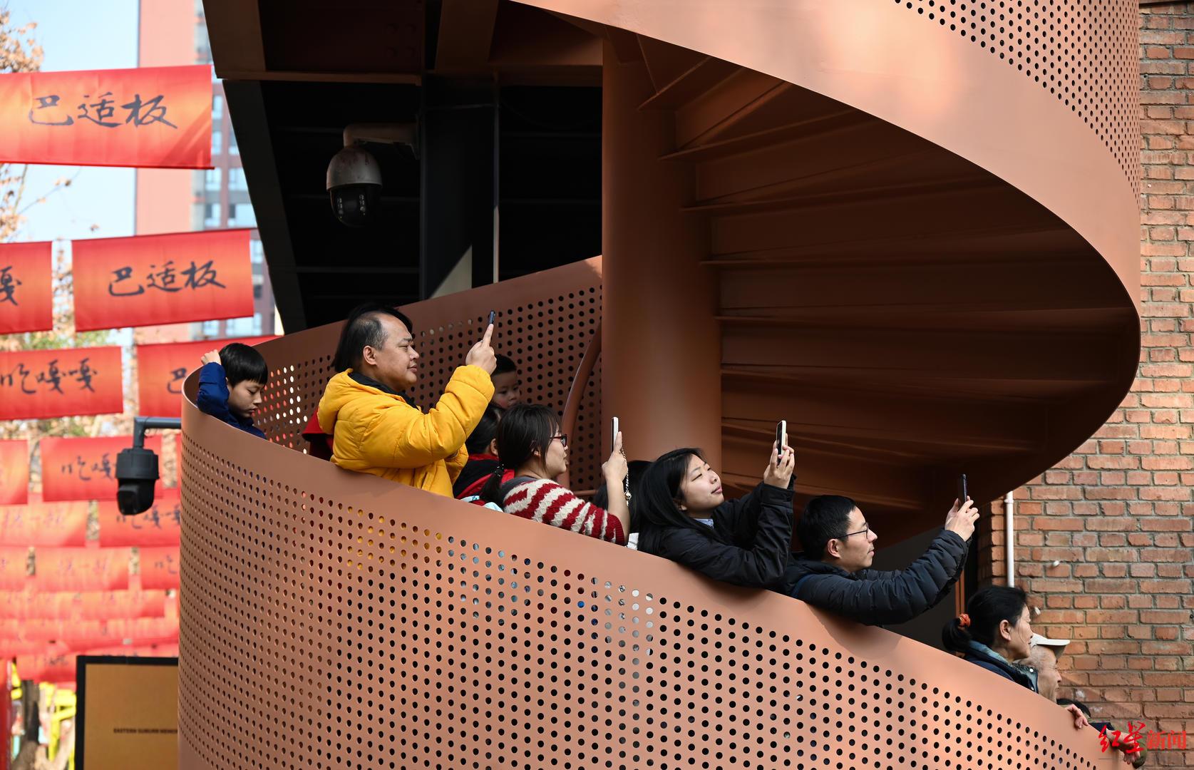 她是看了网上的旅游攻略来东郊记忆的,看着现场那么多人,她觉得自己“没来错”。邬女士表示,她觉得东郊记忆特别复古,又很新潮,活动又多,“春节的感觉到位了。”