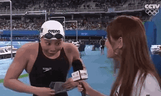 当从记者口中得知自己的成绩时,她毫不掩饰自己内心的喜悦,张大嘴巴,瞪圆眼睛,激动地喊道:“58秒95?啊!我以为是59秒!啊!我游这么快?我很满意!”