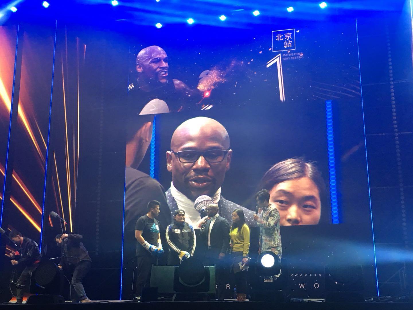 11月28日北京奥林匹克体育中心,由北京布莱森体育文化有限公司主办,保持50胜未尝一败的世界拳王梅威瑟中国行粉丝见面会在此举行,北京布莱森体育文化有限公司总经理“康文杰先生、张丽女士与著名体育经纪人、美中体育协会主席周爱明女士均参加了本次活动。