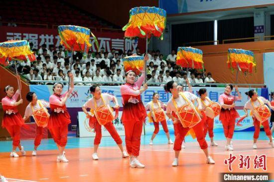 大鼓凉伞表演。中新网记者 张金川 摄