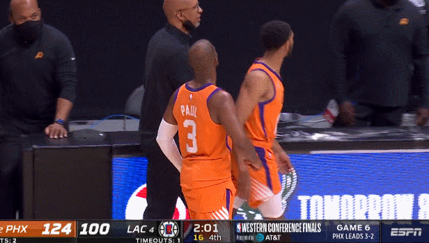 本赛季,保罗来到了太阳,这只连续10年无缘季后赛的鱼腩球队从未被看好。但保罗的球队以常规赛第二的战绩杀入季后赛,首轮季后赛太阳四比二战胜了卫冕冠军湖人,此轮球队横扫了缺乏穆雷的掘金队,在这轮系列赛保罗给出场均25.5分10.3助攻的表现。但此时命运又跟保罗开了个小小的玩笑,由于感染新冠,无缘西决前面两场比赛。好在太阳其他球员争气,拿下前面两场比赛,最终太阳四比二战胜快船。其中第六场比赛,保罗在自己熟悉的斯台普斯中心爆砍季后赛生涯最高的41分,对着球场不断怒吼,这可以说是保罗十几年坚持的一次发泄。