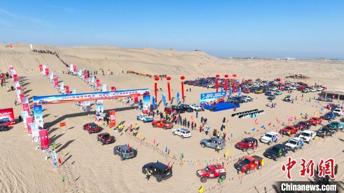 10月26日,2024新疆博斯腾湖“阿诺达”杯沙漠越野争霸赛暨沙行联赛总决赛,在中国最大内陆淡水湖——博斯腾湖湖畔的南山沙漠公园开赛。图为参赛车辆依次排队,等待发车。年磊 摄