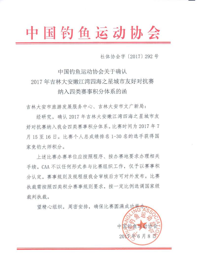 赛事名称: 2017年中国(大安)嫩江湾休闲垂钓邀请赛暨四海之星城市友好对抗赛