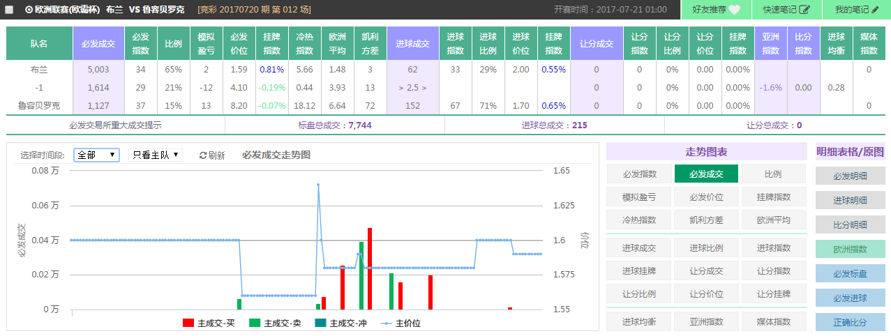 欧洲联赛(欧霸杯) 布兰 VS 鲁容贝罗克 [竞彩 20170720 期 第 012 场]