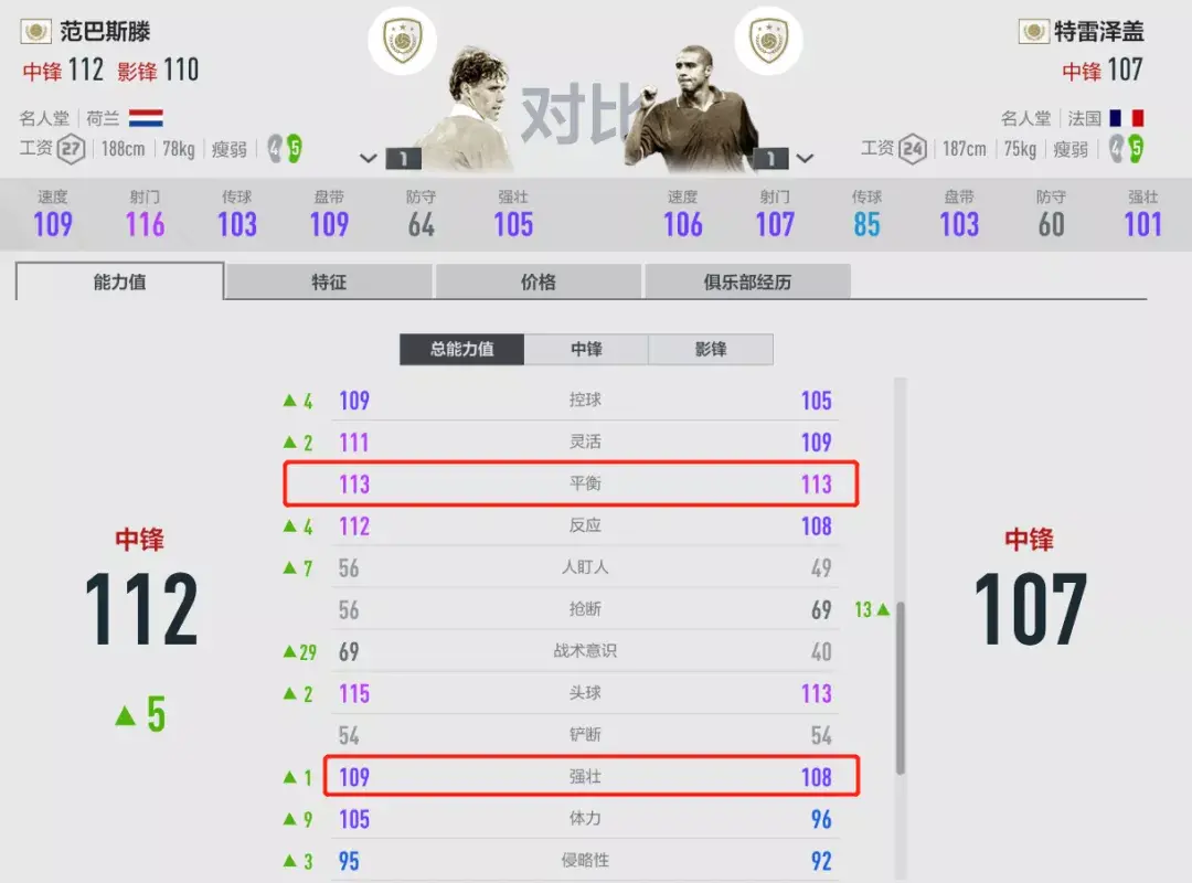 ICON特雷泽盖不是伊布、吉鲁那种能持续背身抗人的大中锋,受限于体重和体型,特雷泽盖的对抗能力并不是非常出众,大家可以参照ICON范巴斯滕。实战里能发现,特雷泽盖被侧身冲抢时很难依靠对抗将球护住,不过因为平衡性不错,所以有机会尝试反抢和就地压迫 。为了提升稳定性,建议大家给他安装“熟练的身体对抗”助教 。