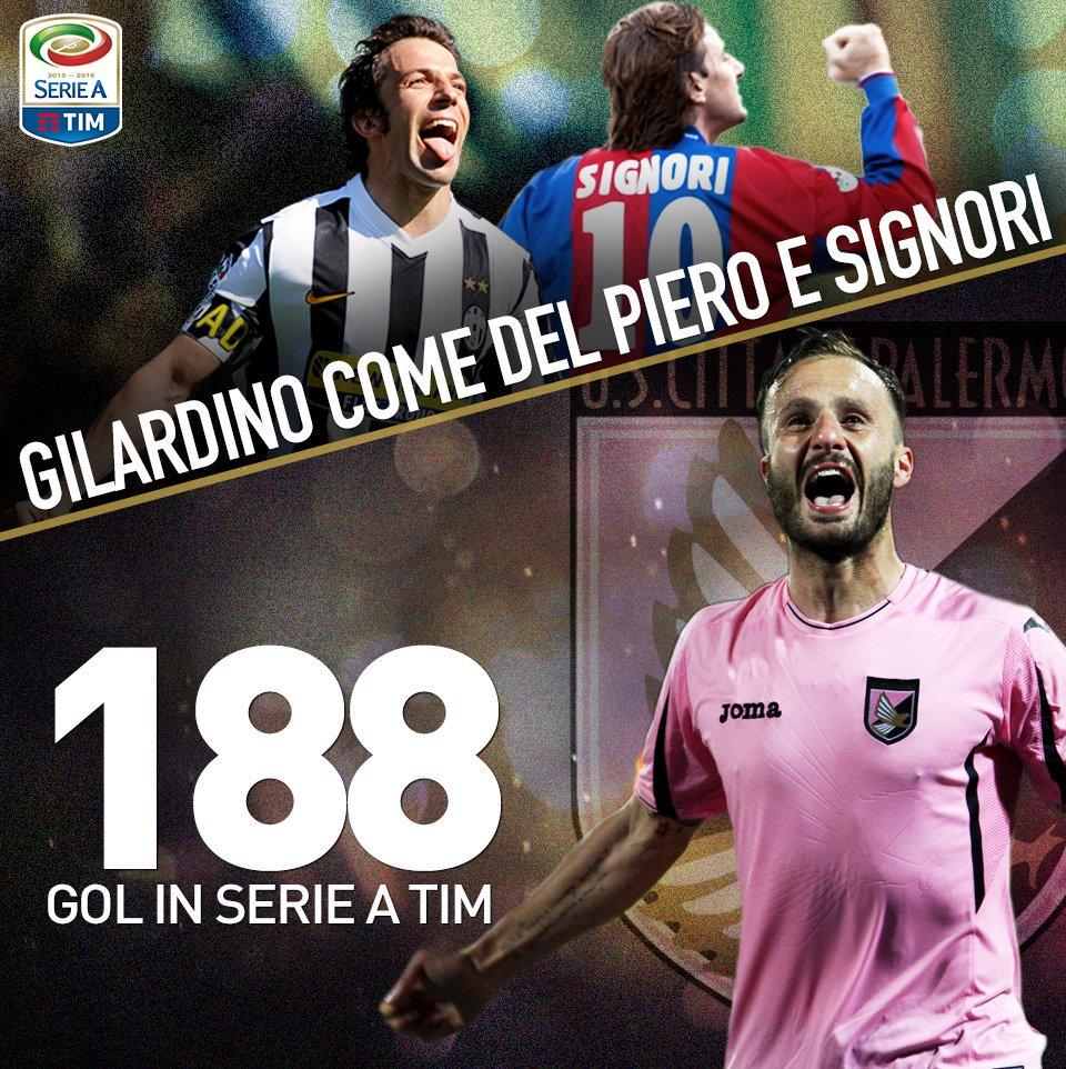 在意甲联赛中,皮耶罗、西格诺里、吉拉迪诺这三位意大利前锋,都是打进188球,并列意甲历史射手榜第9位。