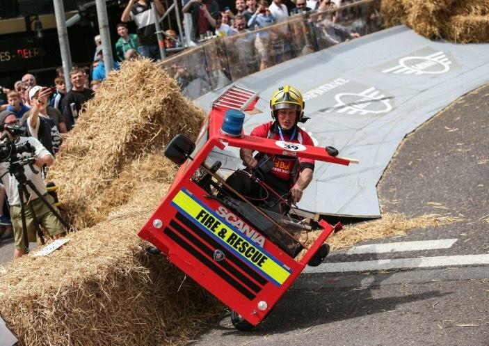 有意思的是,虽然这是一项“赛车”比赛,但绝非第一个冲过终点的就是胜利者哦。由于所有参赛的赛车都是无动力赛车,需要通过参赛选手“驾着”自己的坐骑从斜坡上疾驰而下完成比赛,因此,最终的比赛结果将根据参赛车下落时的速度、造型和人气来进行综合评判。