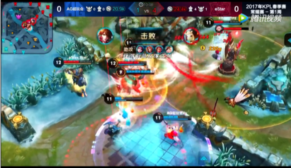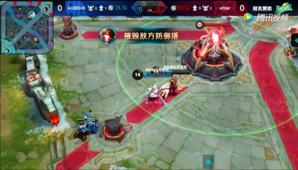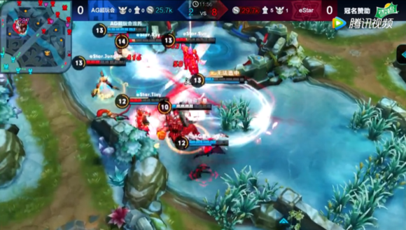 双方在中路遭遇,虽然AG被打了一波一换四,但是eStar的鲁班被切死,这时梦老师的李白已经几进几出显现出了威力。