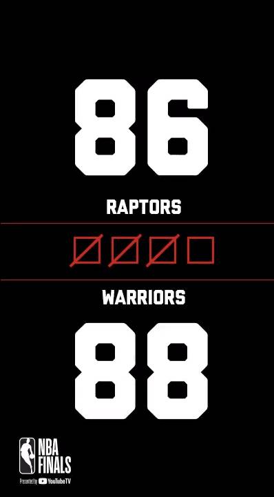 末节开局克莱仍然还没回来,而随后消息出来也确定不会回归。勇士的轮换阵容以考辛斯为主,但他两次低位进攻仅博得一次犯规命中一次罚球,防守端猛龙不断挡拆找考辛斯单打,范弗利特命中单打三分追平了比分。暂停归来双方的攻防可以用惨烈来形容,范弗里特高难度命中三分完成反超,勇士则一个进攻篮板一个抢断转化成4分予以回应,双方此后数次打成平手,可以称之第四节表现最好的范弗里特再度命中三分,而随后连续丢掉篮板让勇士非常的被动,随着洛瑞的跳投命中,猛龙拿到6分领先。德雷蒙德-格林的止血三分和考辛斯强硬的连续拿分将分差追至1分保留希望。最后时刻的争夺中丹尼-格林出现失误,勇士拿到绝杀球权,不过库里的三分绝杀不中没能完成奇迹。最终,猛龙114-110力克勇士拿下最关键的比赛胜利,从而以4-2的总比分击败卫冕冠军勇士,夺得2018-19赛季的总冠军。