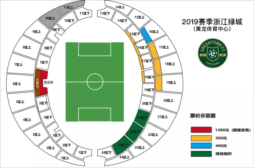 2019赛季浙江绿城年卡相关介绍及销售细则: