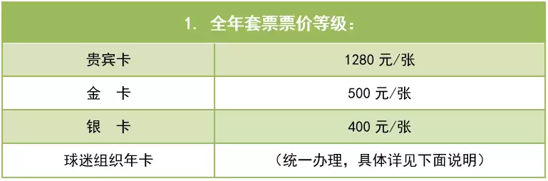 和往年一样,新赛季绿城主场门票依旧以年卡(全年套票,下同)和散票两种方式销售。