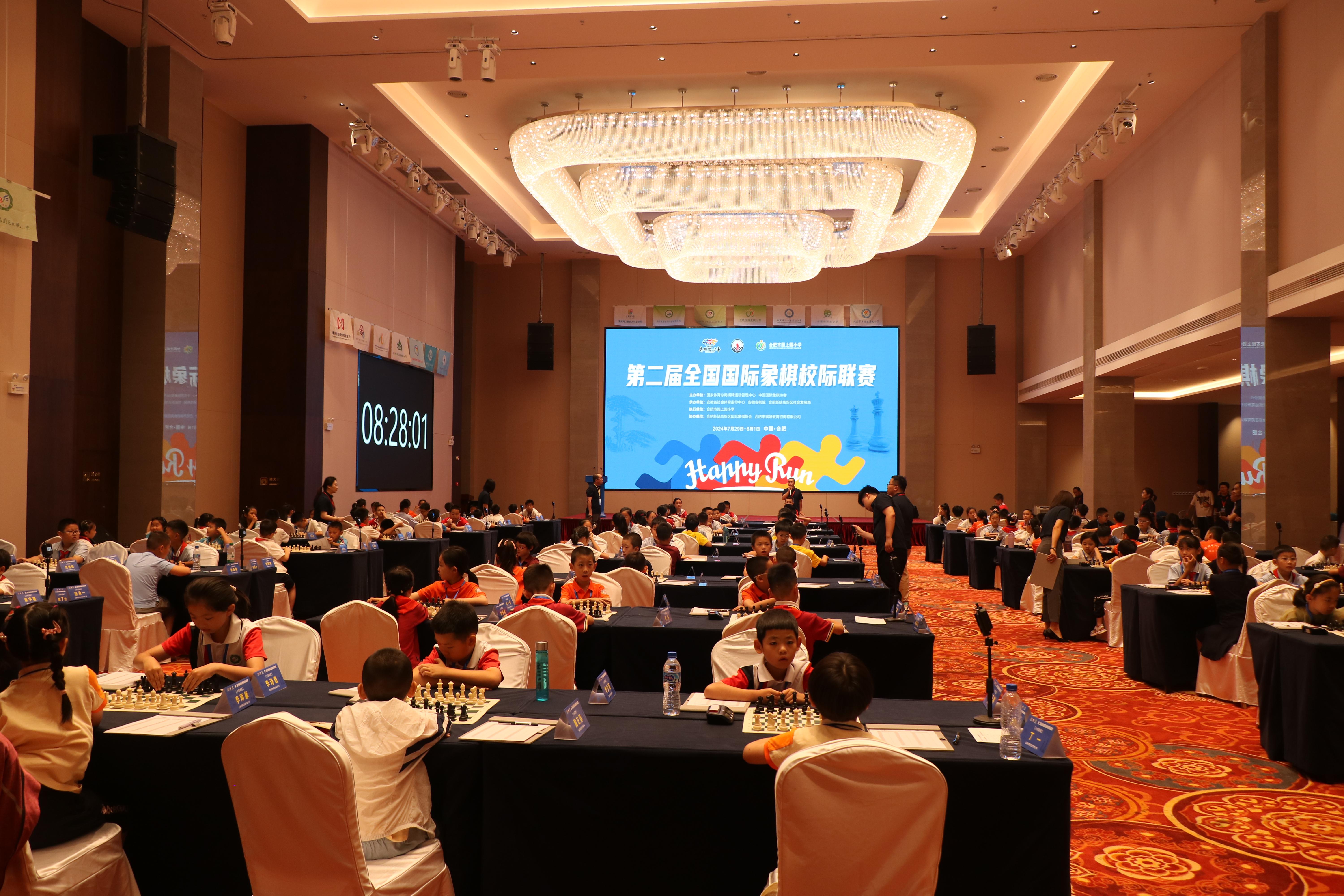 7月30日上午八点,“奔跑吧•少年”儿童青少年主题健身活动——第二届全国国际象棋校际联赛在合肥新站高新区隆重开幕。
