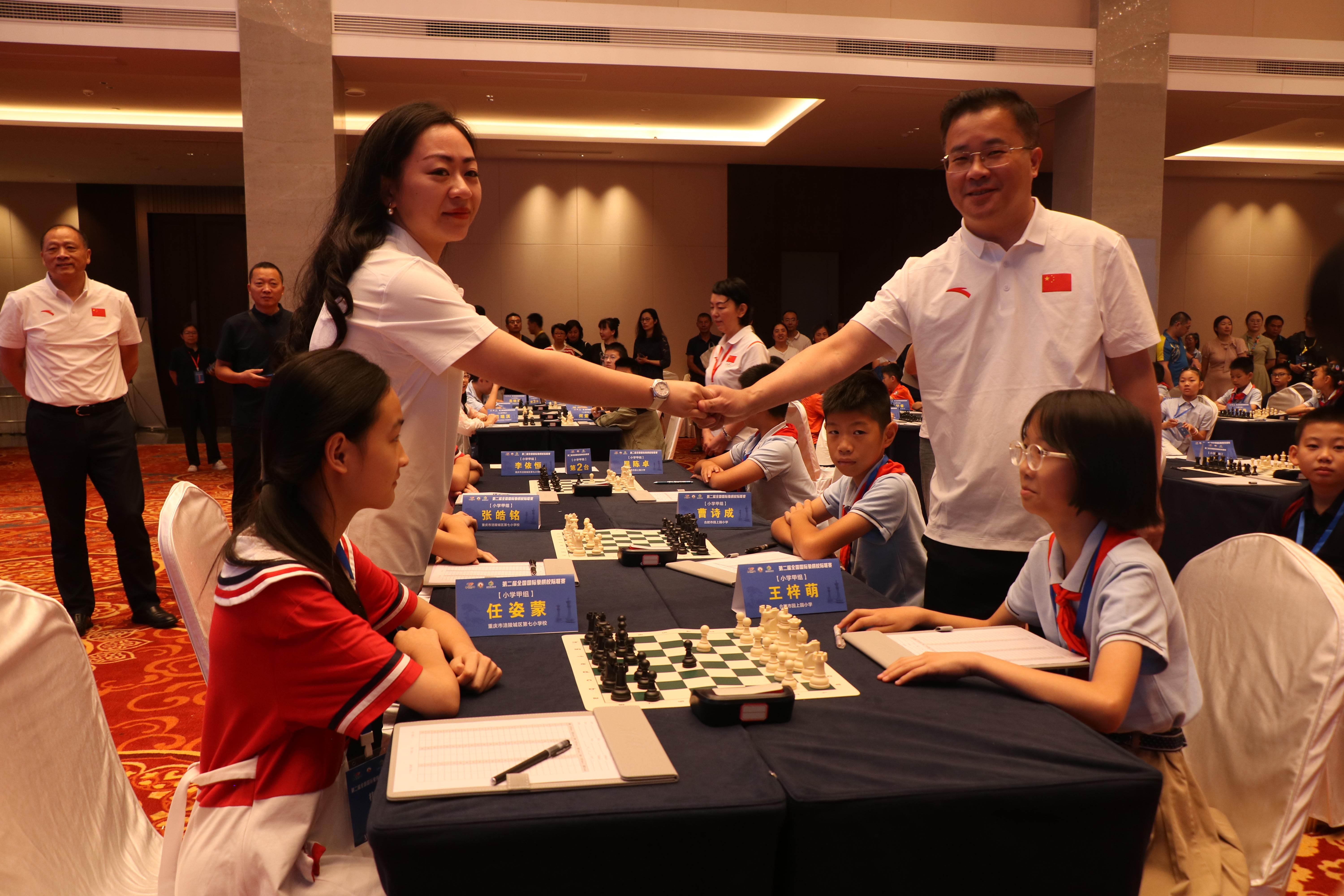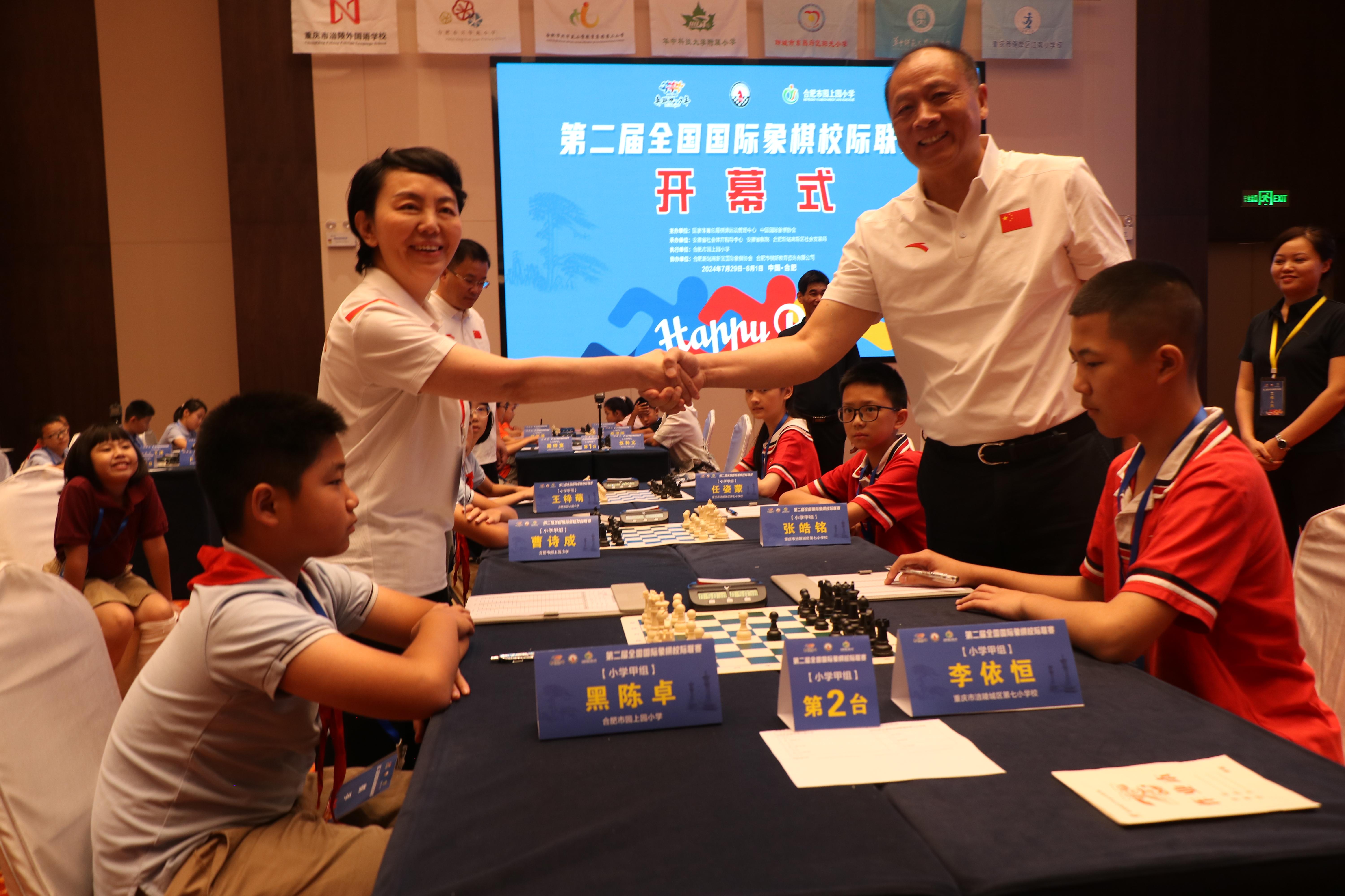 国家体育总局棋牌运动管理中心国际象棋部主任田红卫、安徽省社会体育指导中心主任韩承山。国家体育总局棋牌运动管理中心国际象棋部竞赛主管李齐和新站高新区党工委委员、管委会副主任傅壮分别为比赛开棋。