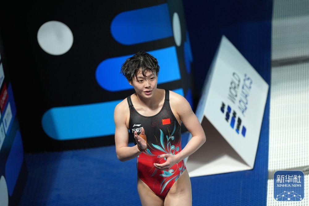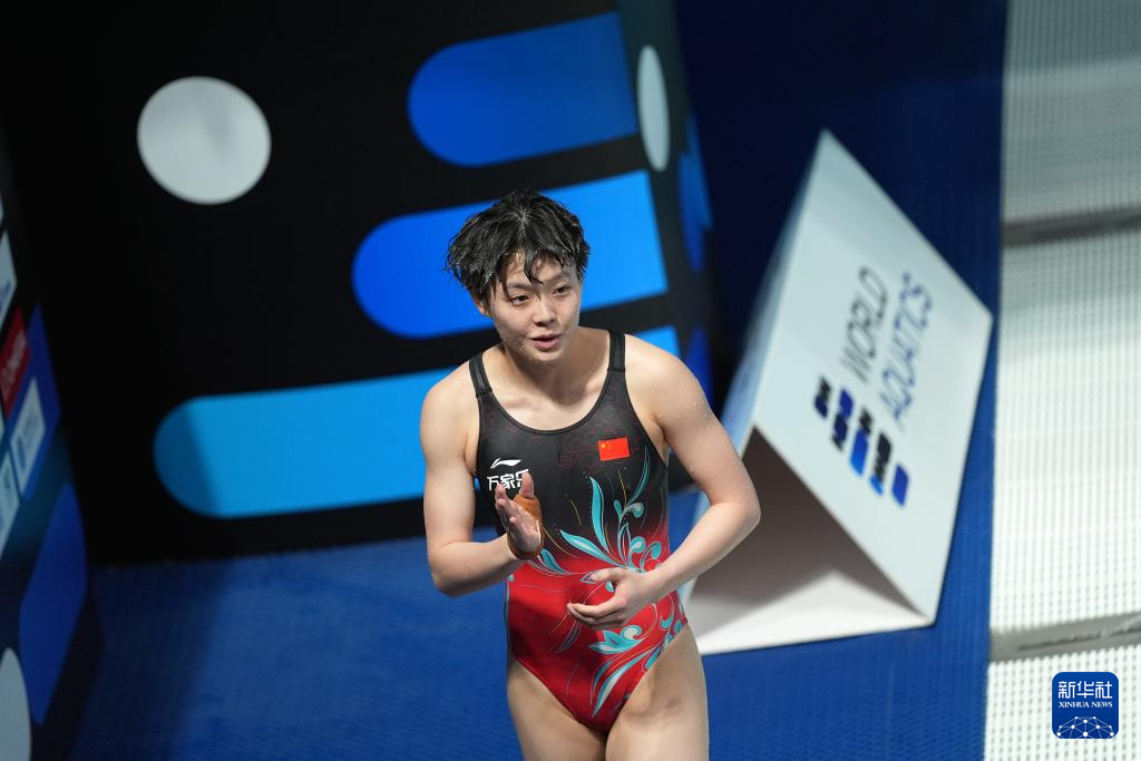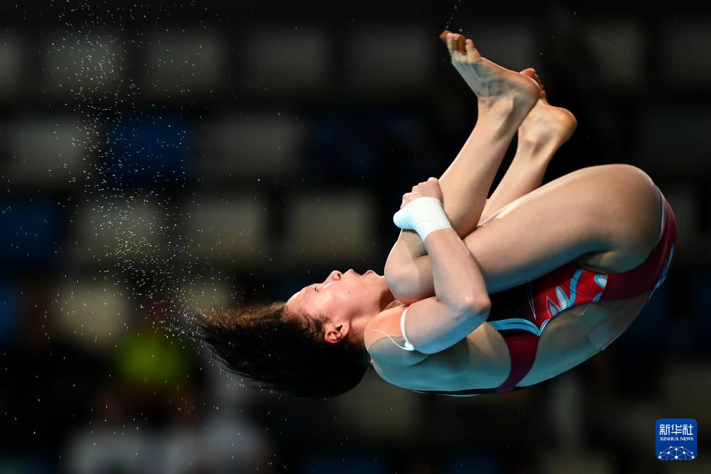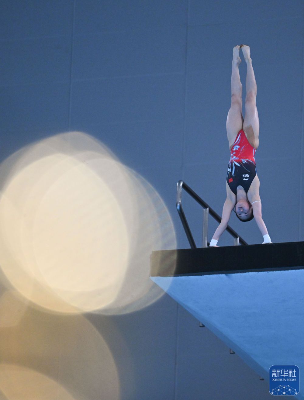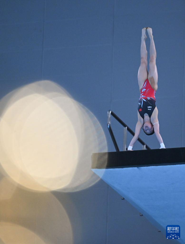↑陈芋汐在女子十米台比赛中。新华社记者 张博文 摄