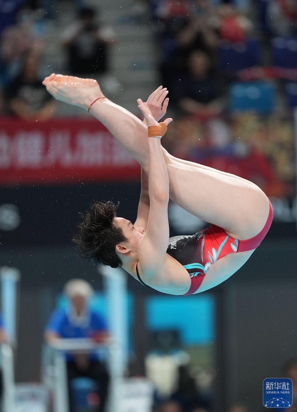 ↑陈艺文在女子三米板比赛中。新华社记者 李一博 摄