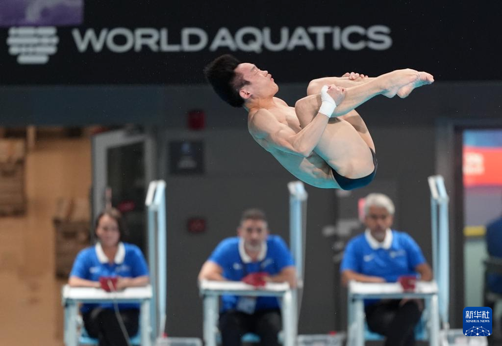 ↑杨昊在男子三米板比赛中。新华社记者 李一博 摄
