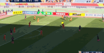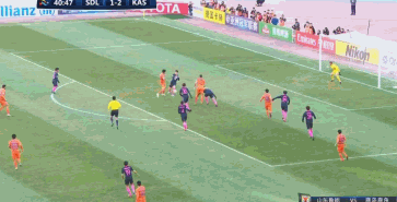 第19分钟王彤右路输送传中,门前包抄的吴兴涵甩头攻门,将皮球顶到了三竿健斗的手上,主裁判罚点球,佩莱操刀主罚一蹴而就,助鲁能将场上比分追成1-2。