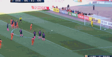 第13分钟鹿岛掷出界外球,平户太贵将皮球输送到禁区内,伊藤翔在面对着出击的王大雷时,冷静的将皮球挑过对方头顶破门,实现梅开二度的好戏,鹿岛以2-0扩大优势。