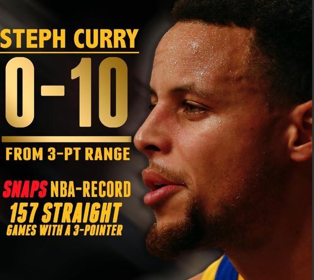 库里的三分除了准之外,另一个特点就是稳了,那就是三分命中率能保持在相当高的水平,你完全无法想象一场比赛库里没有命中三分的场景。而库里之前曾创造连续157场投进三分纪录,几乎连续两个赛季,每场都有三分入账。但是这项纪录终结于2016年11月一场对阵湖人的比赛,那场比赛库里三分10投0中,这项纪录也就此终结。而上一次库里没有投进三分,居然还是2014年11月份对阵马刺的比赛,足以见得库里的三分有多么猛。