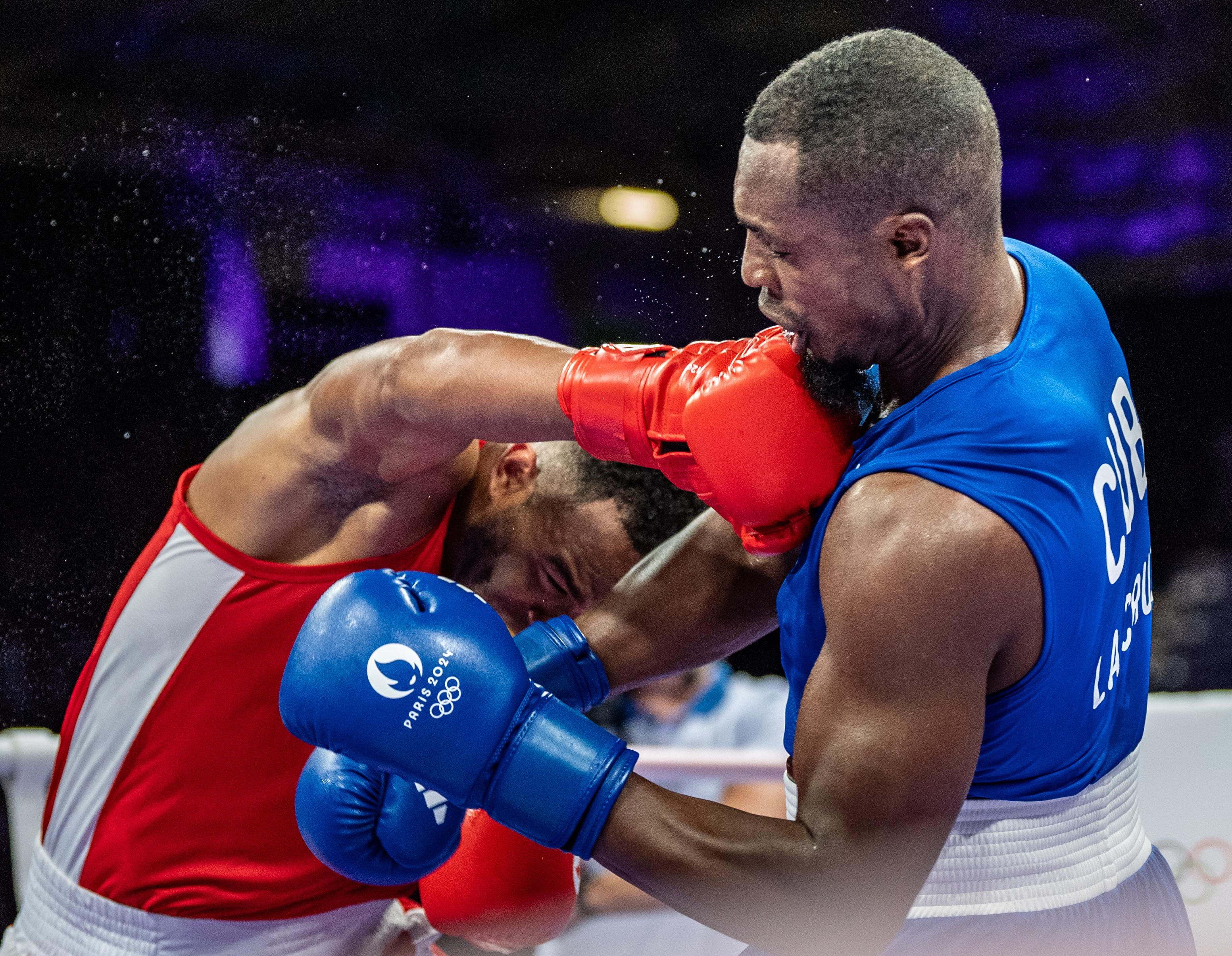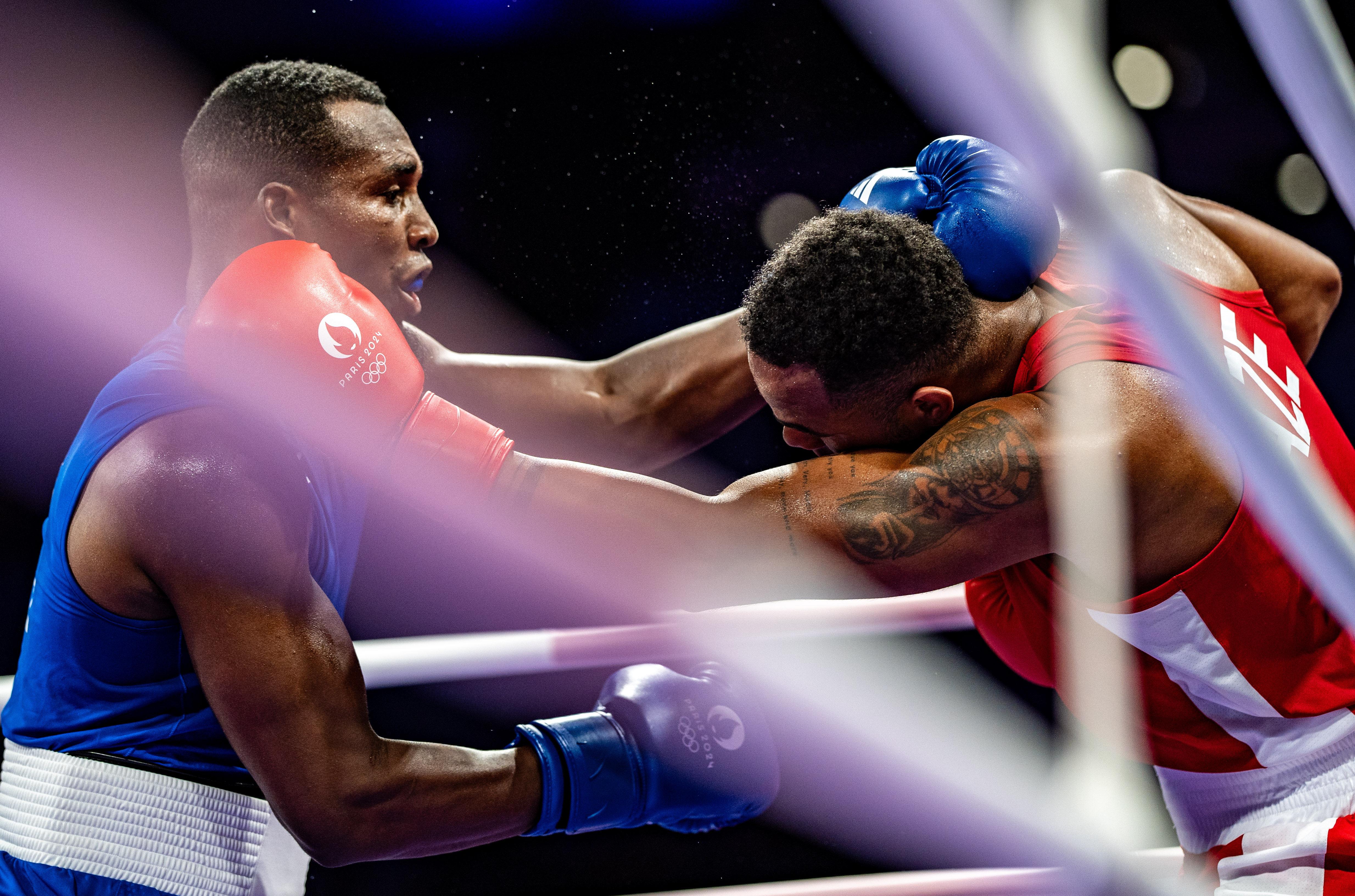 当日,巴黎奥运会拳击项目男子92公斤级16强赛在北巴黎竞技场举行。