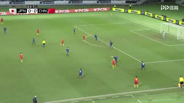 如上图所示,这是国足在东亚杯赛场上与日本男足的一场较量,中国男足在日本队的左边路局部完成了一次较为经典的二过一战术配合。传球队员与跑位队员之间有着较高的默契度,持球队员并不急于送出传球,而是等日本队的左中卫从原先的位置出来后再选择传球, (这一招在足球比赛中被称为“引蛇出洞”),对手一旦离开了原先的位置,在他的身后除非有球员帮他补位,那么在他身后必然留有空当可以为本方球员所利用。