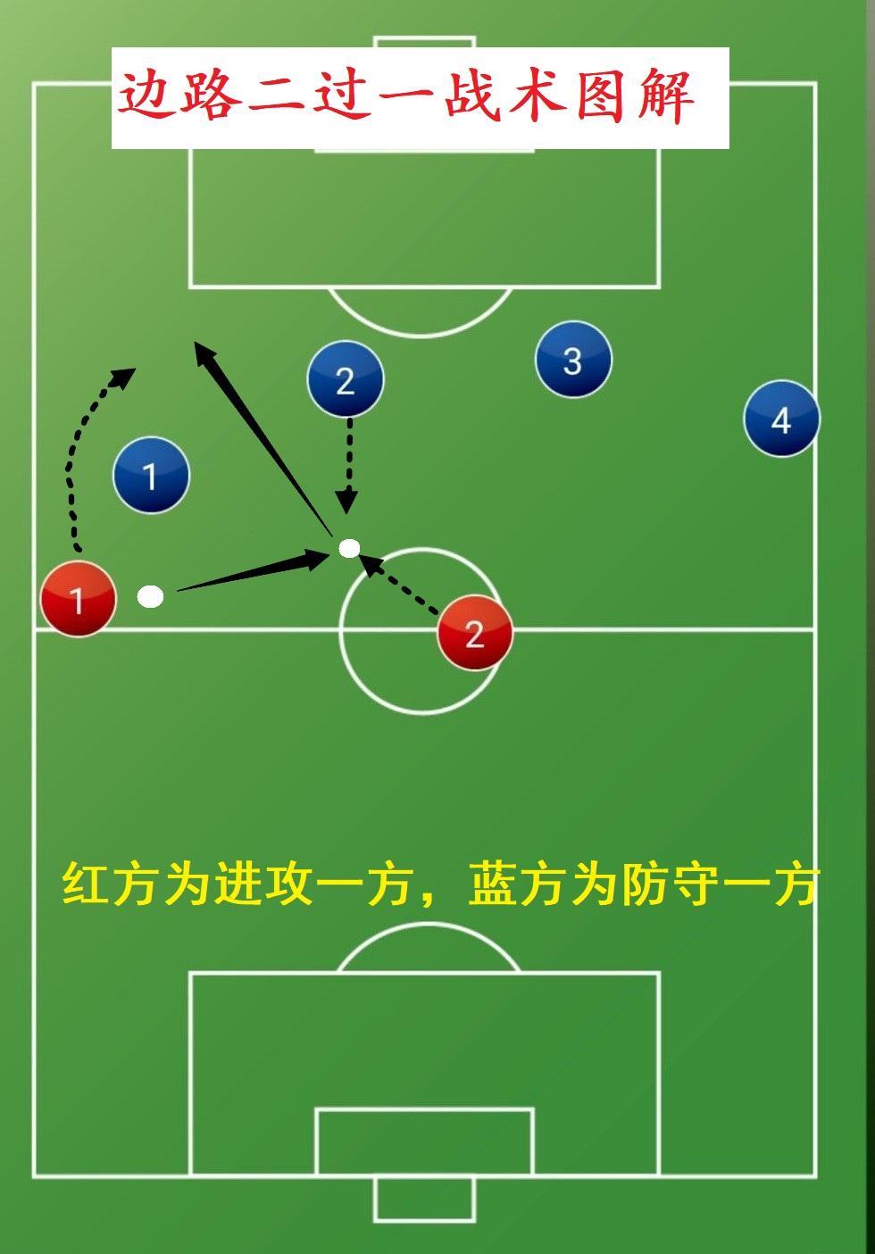 想在边路突破对手的防线,有一个比较简单的方法,那就是二过一战术配合。