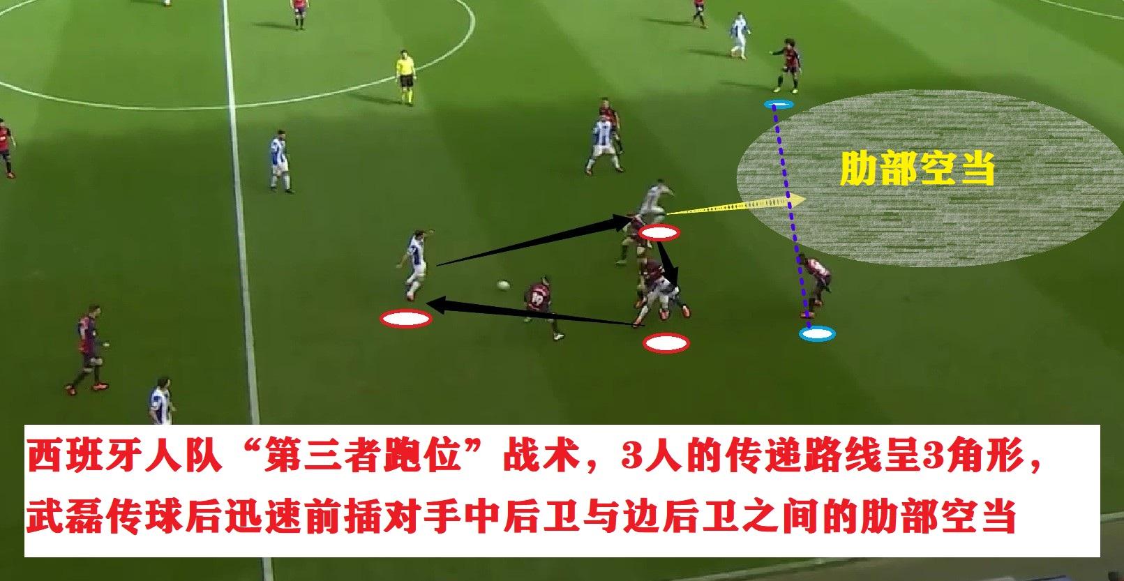 西班牙人队的叠瓦式跑位战术,武磊在其中扮演第三者的角色。