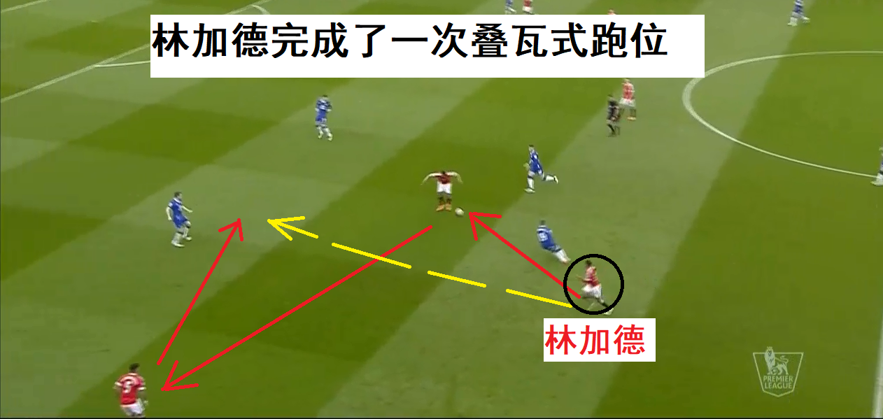 林加德完成了一次叠瓦式跑位,三名球员配合默契,在边路完成突破