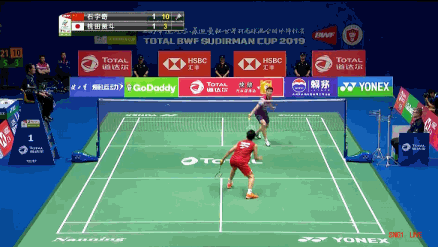 第三场,男单比赛,石宇奇2-1战胜日本队选手桃田贤斗。