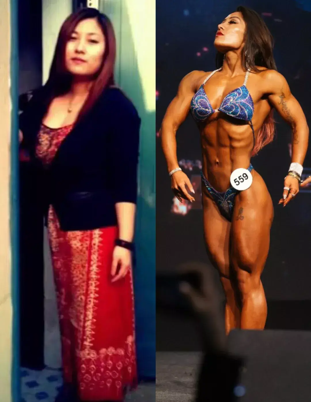 卞瑞英健身起步很晚,30岁才接触健身,起初的目标是减肥,拥有好身材。然而她的天赋非常高,通过一段时间的坚持就实现了目标。