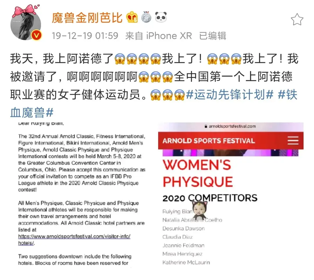 很显然阿诺德女子健体邀请名单出来时,并没有“卞瑞英”的名字。