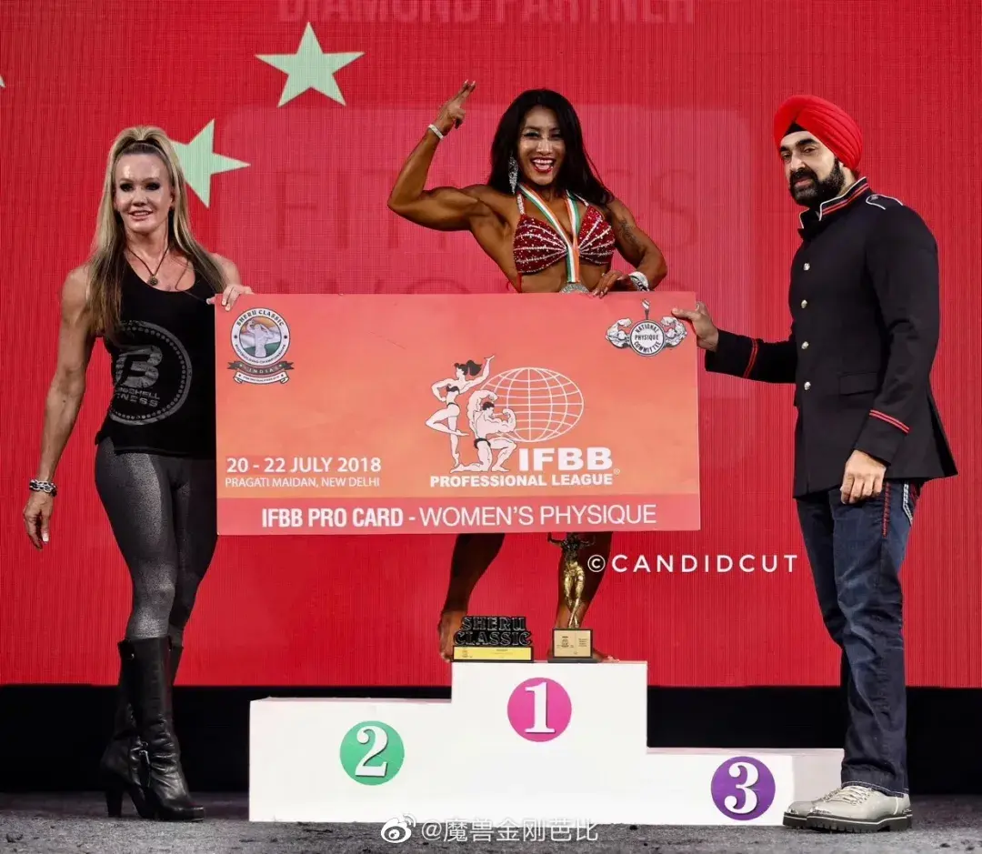 卞瑞英在2017年就大火过一次,获得了美国德克萨斯州NPC女子健体全场冠军,2018年拿下了印度IFBB女子健体全场冠军,拿到IFBB职业卡。