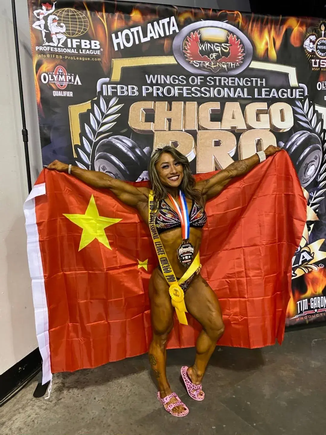 到了2020年,在刚结束的IFBB Pro芝加哥职业赛上,注意这是职业赛,不是赢了可以成为IFBB Pro的比赛,是全场人均PRO的比赛!