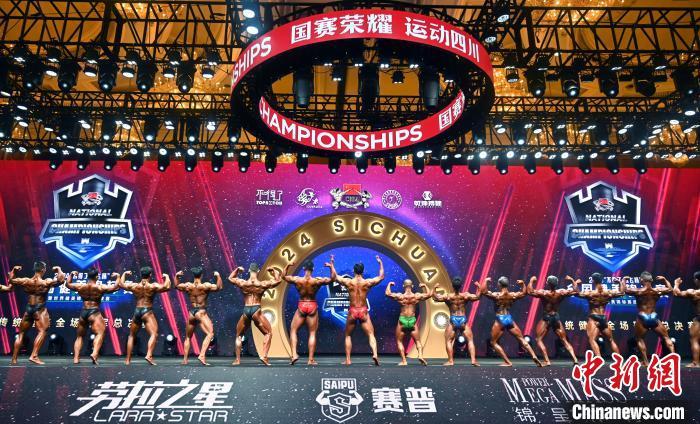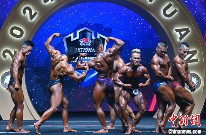 8月21日,“不得了·放飞杯”2024年全国健美锦标赛暨世界健美锦标赛选拔赛、CBBA PRO中国健身健美精英职业联赛(成都站)在成都圆满收官。本次赛事由中国健美协会主办,四川爱卡卡集团有限公司承办,四川不得了集团有限公司冠名、运营,四川省健美健美操协会、四川中国西部研究与发展促进会等单位协办,赛事共设置古典健美、女子形体、传统健美、健身比基尼、男子健体、女子健身模特、男子健身模特7个项目35个组别,经过两天的激烈角逐,最终决出了7个项目的全场总冠军。图为男子健体全场冠军总决赛比赛现场。中新社记者 安源 摄