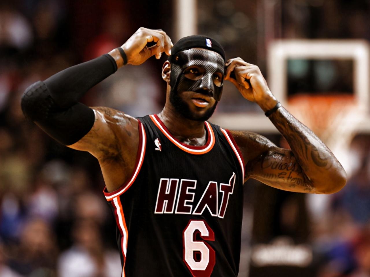 NBA不少球员都有戴面具的习惯,其中有一部分球员是因为个人习惯,更多的则是由于面部受伤,戴面具只是为了防止自己的面部遭受打击。在众多面具中,纯黑色面具最为少见,热火时期,詹姆斯在比赛中佩戴黑色面具犹如来自地狱的黑暗帝王十分霸气。