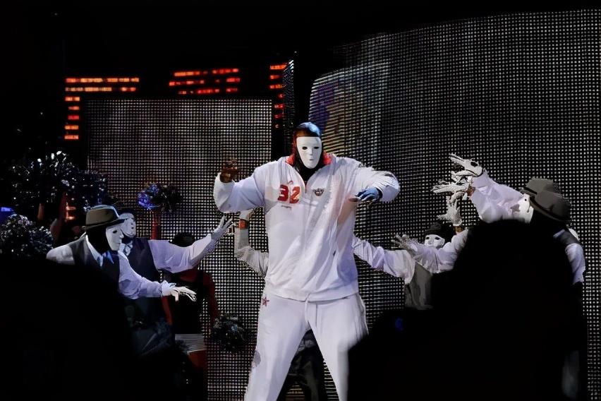 奥尼尔作为联盟的活宝,尽管球员时期没怎么戴过面具,但是在一次全明星出场时,他佩戴面具跳着机器舞却火遍大江南北。图片中的奥尼尔和一群佩戴相同面具小哥热舞的画面可谓印刻在每位NBA球迷的心中,以至于一说到面具,小编首先想起的就是他!
