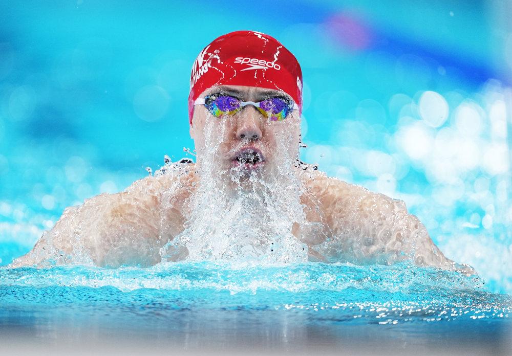 当日,巴黎奥运会游泳男子100米蛙泳半决赛在拉德芳斯体育馆举行。