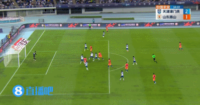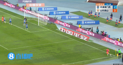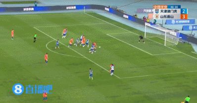 第33分钟,王彤右路传中被解围,廖力生外围跟进远射,皮球打在郭皓身上折射得分,天津津门虎2-2山东泰山!↓