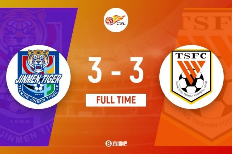 直播吧5月20日讯 北京时间5月20日晚19点35分,2023赛季中超第8轮在天津奥体中心体育场展开角逐,天津津门虎坐镇主场迎战山东泰山。上半场巴顿和王秋明先后破门,莫伊塞斯、廖力生和陈蒲连入三球,下半场贾德松自摆乌龙。最终天津津门虎主场3-3战平山东泰山,津门虎3胜5平开局8轮不败,崔康熙带队首秀,泰山遭遇三连平。积分榜方面,津门虎积14分位居第4,泰山积8分名列第8。