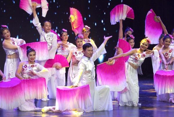 10月13日,上海嘉定区文化馆的广场舞团队在表演广场舞《挽扇蝶舞》。
