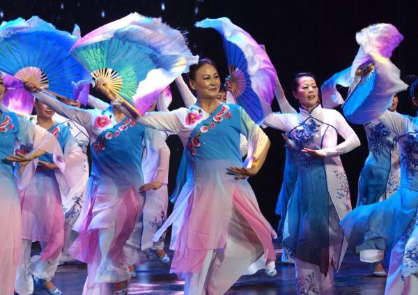 10月13日,上海嘉定镇街道的广场舞团队在表演广场舞《幸福中国一起走》。