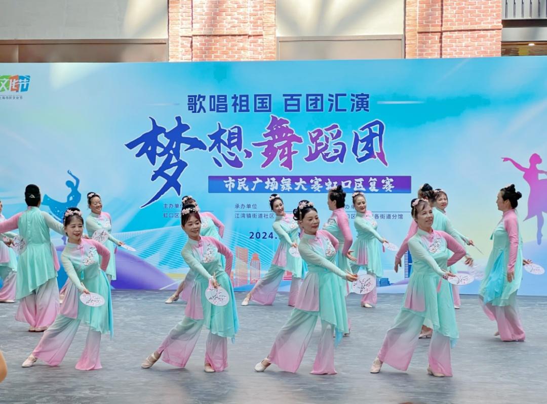 7月30日下午,2024上海市民文化节“歌唱祖国、百团汇演”“梦想舞蹈团”市民广场舞大赛虹口区复赛在彩虹湾举行。本次活动由虹口区文化馆主办,江湾镇街道社区文化活动中心承办,区文化馆各街道分馆协办。
